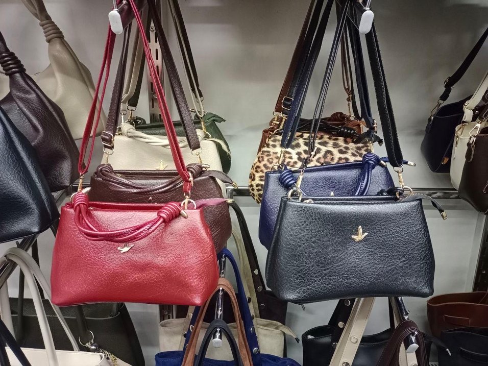 Tokalı detaylı, kahverengi renkli deri kadın çantası. Renkli ve baskılı, sokak modasına uygun.