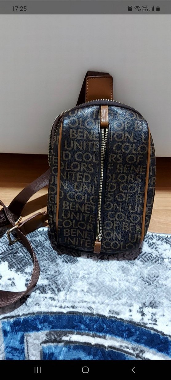 Kahverengi deri çapraz çanta, baskılı desen ve tokalı kapanışa sahip, trend sokak stiline uygun.