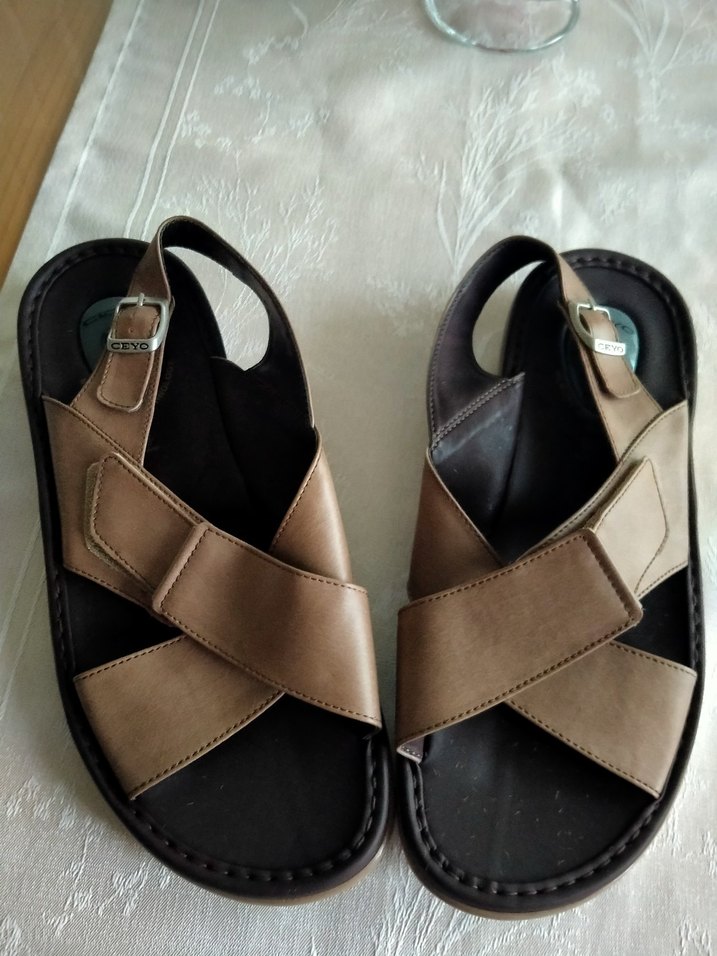 hiç kullanılmadı. orijinal Ceyo marka. Tokalı kahverengi deri erkek terlik, klasik tasarıma sahip ve günlük kullanım için uygundur. Gri tonlu ve desensiz yapıya sahiptir.