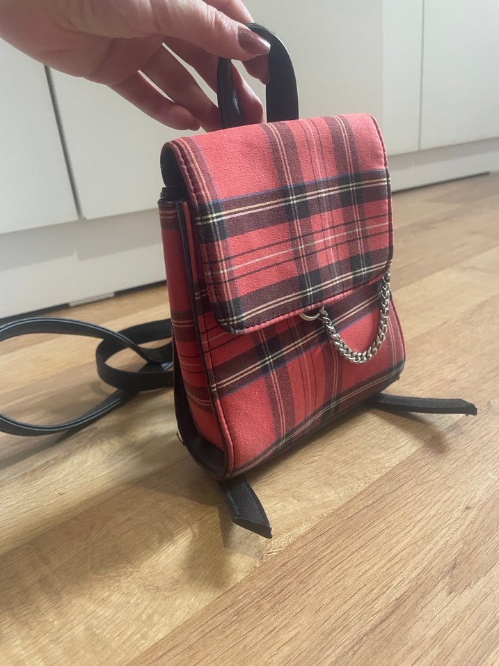 Kadınlar için tokalı kapaklı, parlak kırmızı ekose desenli sırt çantası. Sentetik kumaştan, sokak modası ve Paris tarzı etkileri taşır. Günlük kullanım için uygundur. Markası bershka