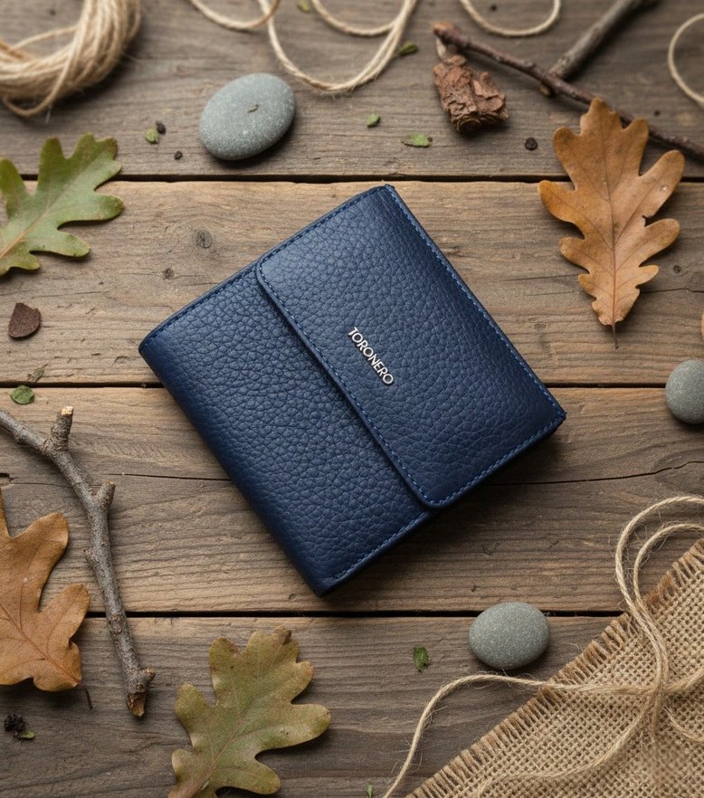 Tokalı, lacivert renkli deri kadın cüzdan. Modern klasik tarzda, günlük iş kullanımı için uygun sade ve şık tasarım.