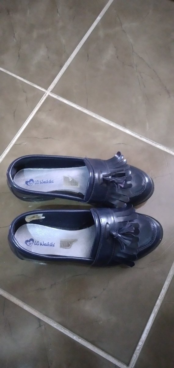 Tokalı, lacivert kız loafer ayakkabı. Düz, dayanıklı kauçuk malzemeden yapılmıştır ve gotik tarzı yansıtır.