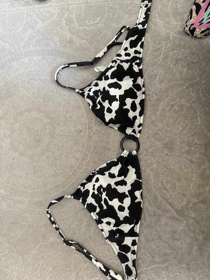 Tokalı halka detaylı, leopar desenli ve askılı kadın bikini üstü. Dış mekan kullanımı için uygundur.