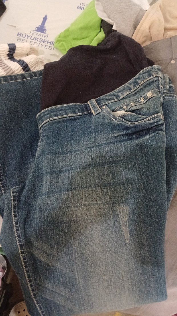 Tokalı detaylı, rahat kesim mavi denim hamile pantolonu, günlük kullanıma uygun rahat ve şık bir tercih. ✨