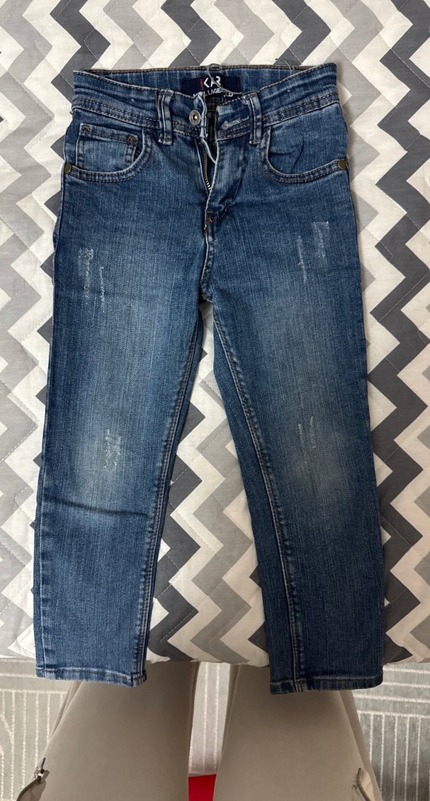 Tokalı detaylı, regular fit mavi kot pantolon. Sokak stiline uygun, hafif yıpratılmış görünüme sahip rahat erkek çocuk pantolonu. 3/4 yaş taş gibi bir pantolon