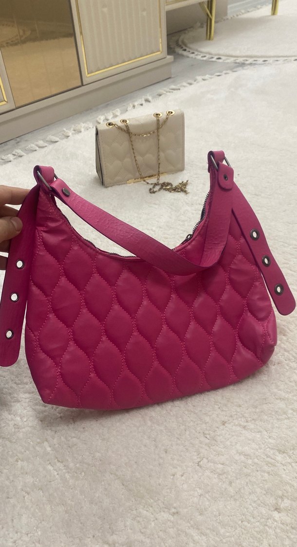 Tokalı kayışa sahip parlak pembe kadın çanta, sentetik kumaştan üretilmiştir. Trendy casual ve Parisli sokak modasına uygundur, günlük kullanım için idealdir.