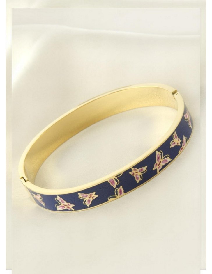 Tokalı, renkli mavi tabanlı ve zarif çiçek desenleri içeren kadın bilekliği, günlük kullanım için uygundur.