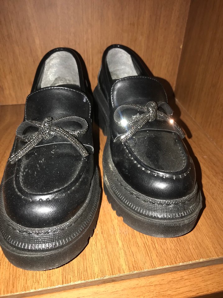 Tokalı detaylı, siyah renkte, kauçuk tabanlı, desen içermeyen goth tarzı erkek bayan loafer ayakkabı.