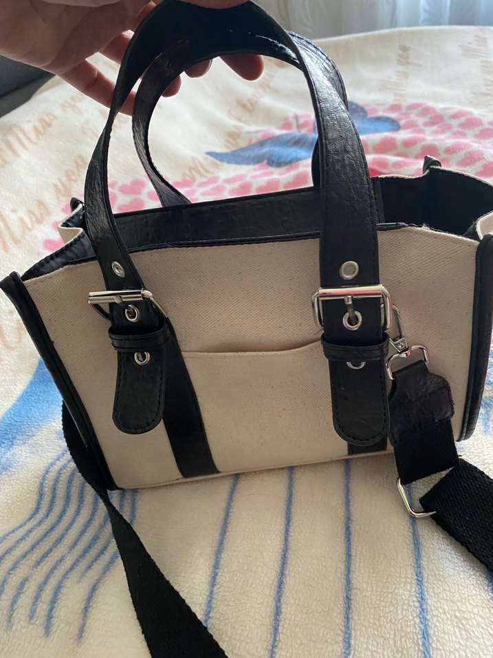 Tokalı Siyah-Beyaz Kadın Omuz Çantası