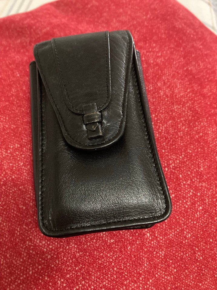 Tokalı kapaklı, siyah biker tarzı sigaralık deri