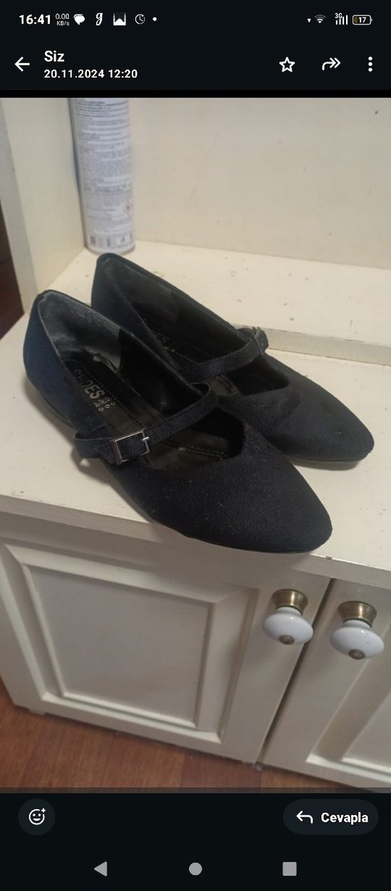 Bu siyah kadın babetleri tokalı kayış ve blok topuk içerir, kauçuk malzemeden yapılmıştır. Ofis için uygun, desensiz ve koyu renklidir.