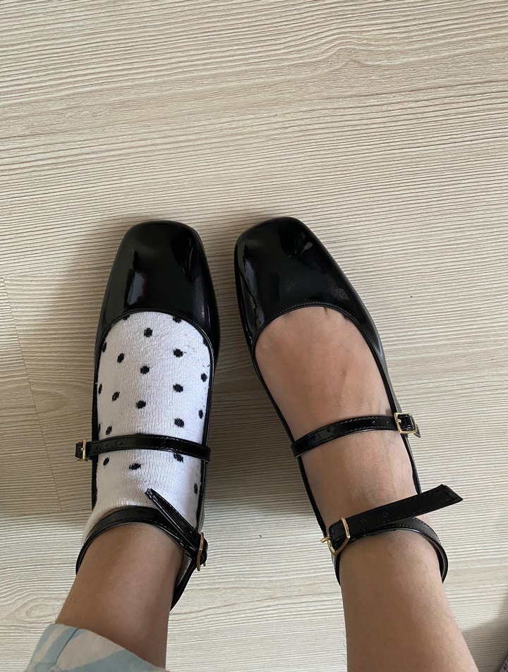 Siyah parlak yüzeyli, tokalı kayışlara sahip blok topuklu kadın babetleri, günlük kullanıma uygun trend goth tarzında. Sadece bi kere giyildi.
