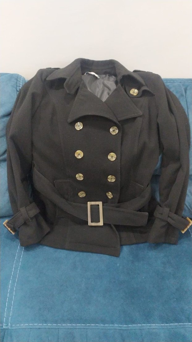 Tokalı, askılı kollu, siyah denim midi uzunlukta, normal kesim, notched yaka kadın ceket. Trendy casual sokak stili için uygundur. kaşe kaban iyi durumda yırtık, sökük yok 38 beden