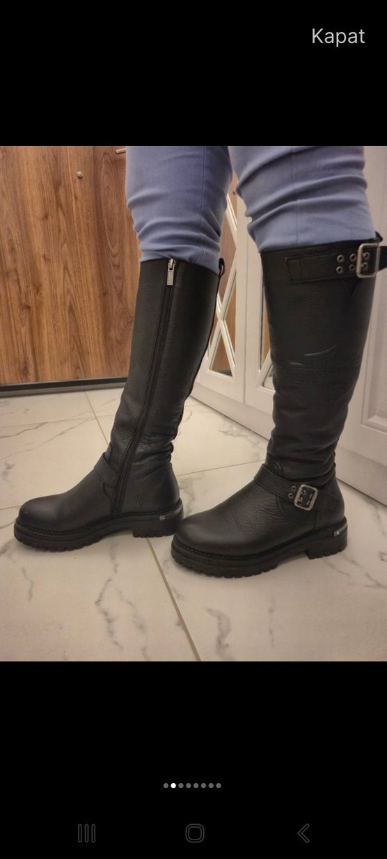 Tokalı Siyah Deri Biker Dizüstü Kadın Çizme harley davidson