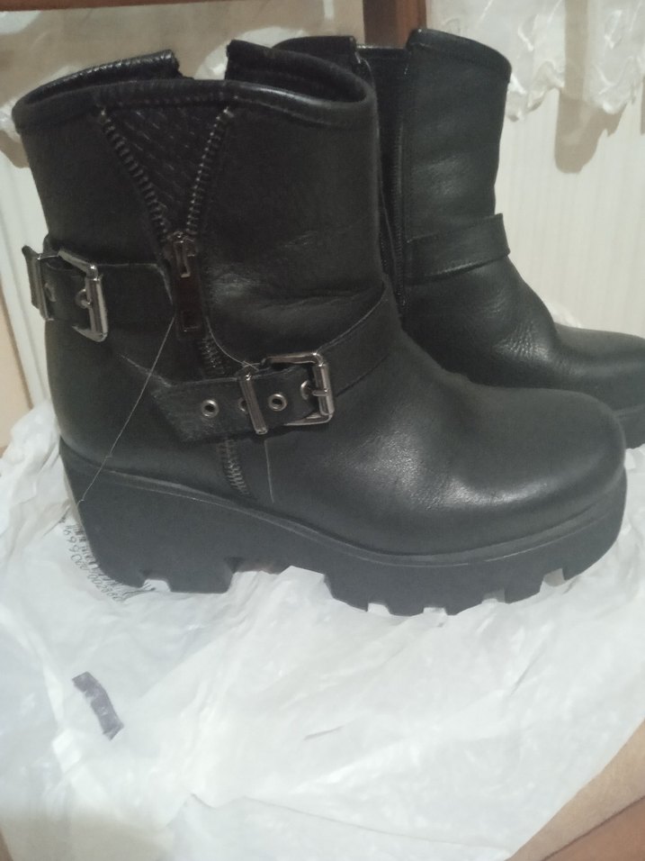 Tokalı detaylara sahip siyah deri biker botlar, dolgu topuklu ve günlük sokak stiline uygun.