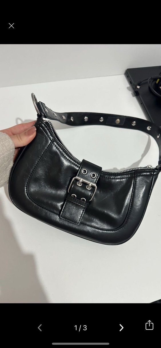 Tokalı Siyah Deri Çanta - Görsel 1
