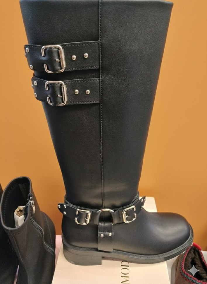 Tokalı Siyah Deri Dizüstü Biker Çizme sifir ürün