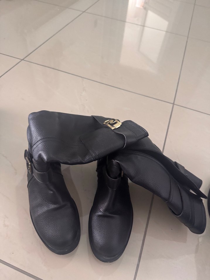 Tokalı Siyah Deri Dizüstü Bot