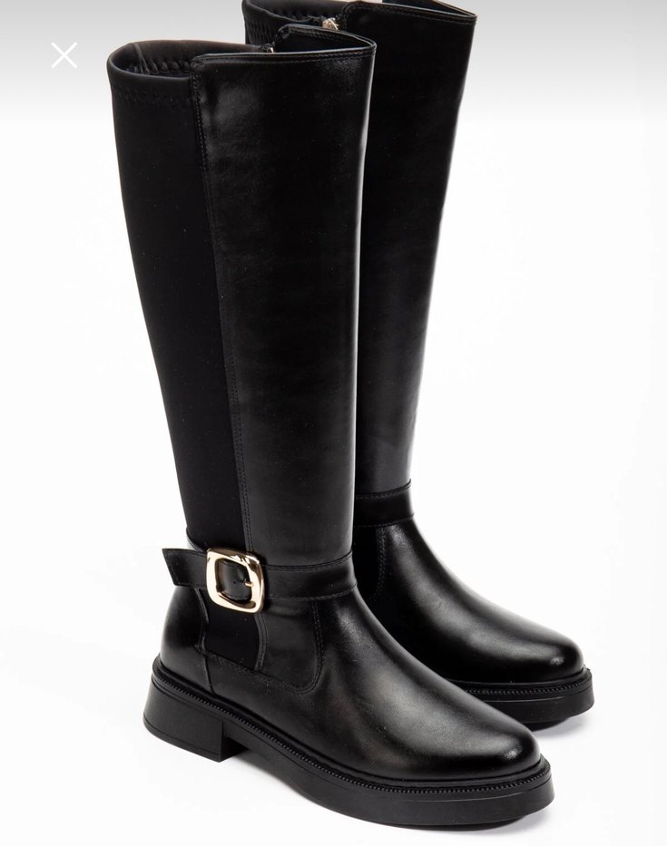 Tokalı Siyah Deri Dizüstü Kadın Çizme