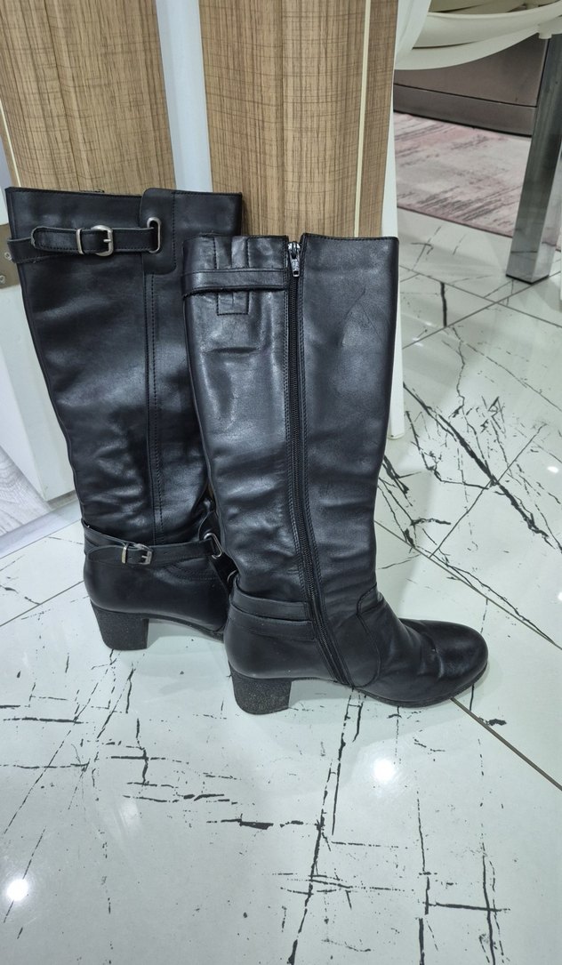 Tokalı Siyah Deri Dizüstü Kadın Çizme