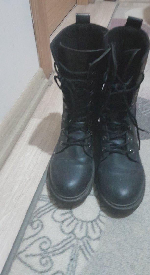 Siyah deri gotik stilettolu tokalı botlar, rock punk tarzı için uygun. Bağcıklı ön ve düz yüzeye sahiptir.