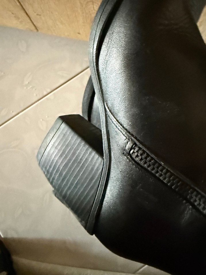 Siyah deri kadın biker bot, tokalı detay ve dolgu topuklu. Minimalist tasarımla günlük kullanıma uygundur.