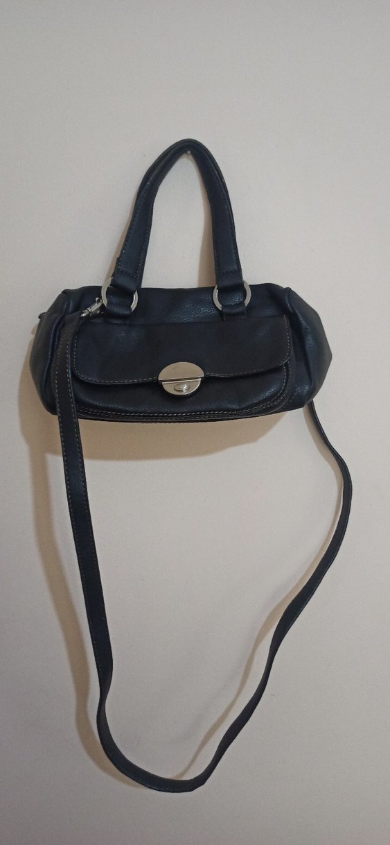 Tokalı kapaklı, kısa kulplu ve uzun askılı siyah deri küçük kadın çantası, minimalist goth tarzıyla günlük kullanıma uygun. Gerçek deri değil. Ön kısmında fazla belli olmayan renk atması var, aynı zamanda astarda mürekkep lekesi var.