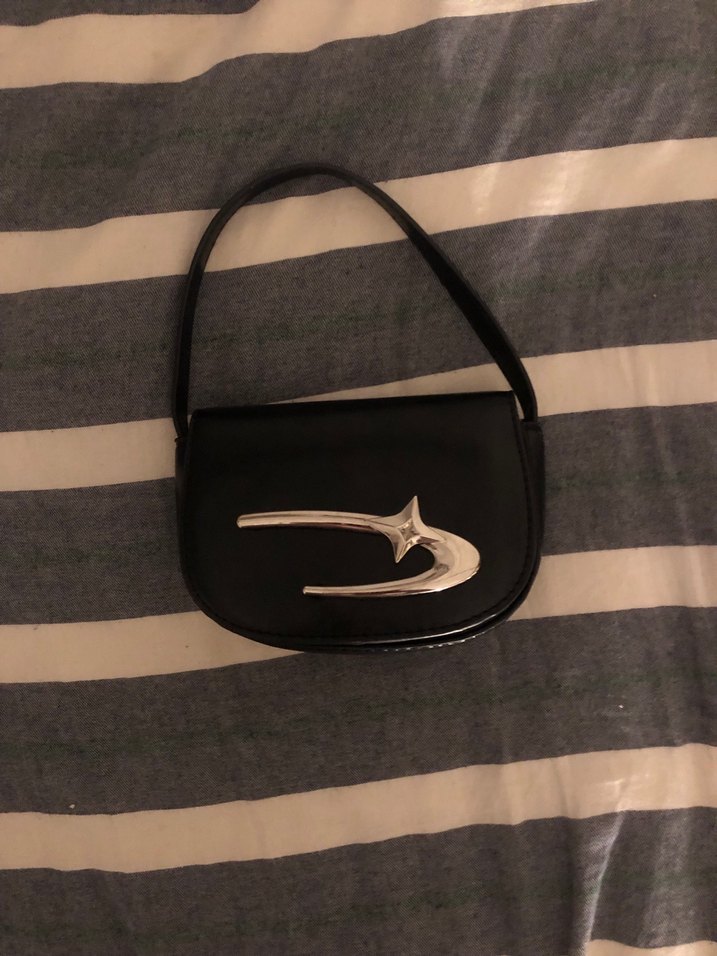Tokalı detaylı, baskılı desene sahip siyah deri kadın çantası. Paris tarzını yansıtan sokak modasına uygun, günlük kullanıma elverişli. sheinden almıştım.
