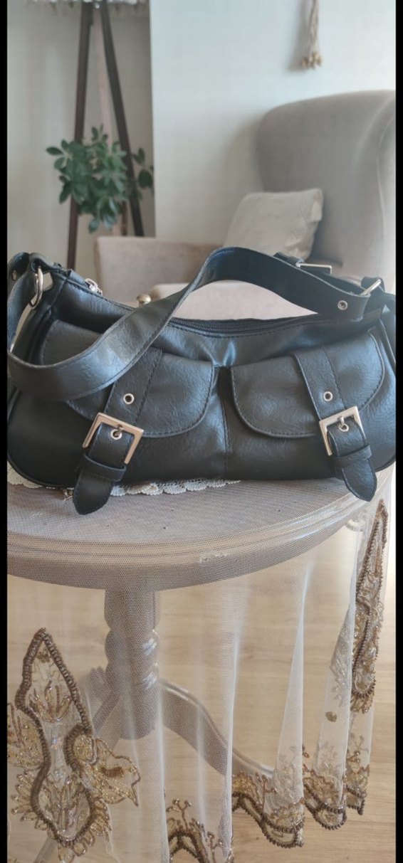 Tokalı Siyah Deri Kadın Çantası Vintage