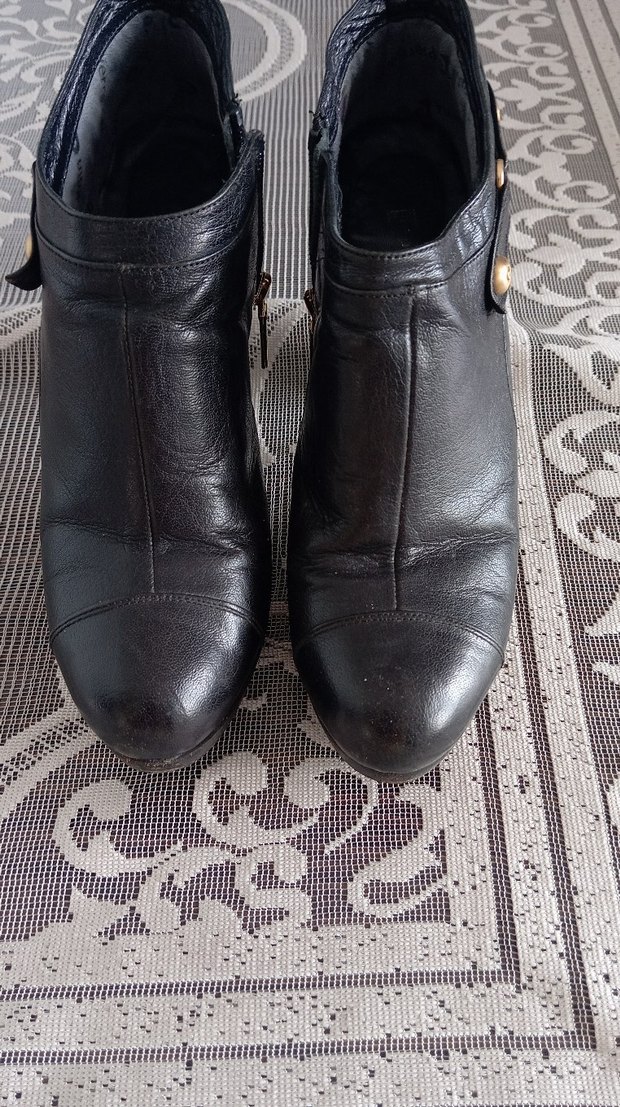 Tokalı detaylı, düz yüzeyli siyah deri dolgu topuk kadın botları. Günlük kullanıma uygun, gotik ve avangart tarzı yansıtır.magazada en pahalı ürün kaliteli marka dayanıklı fırsat ürünü sıfır ayarında iki defa giyildi