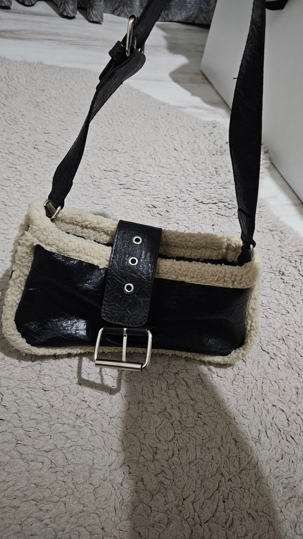 Tokalı tasarıma sahip siyah deri kadın omuz çantası, yumuşak ve sıcak astarlı. Ayarlanabilir askılı, Paris tarzı gotik görünümü günlük kullanıma uygun.