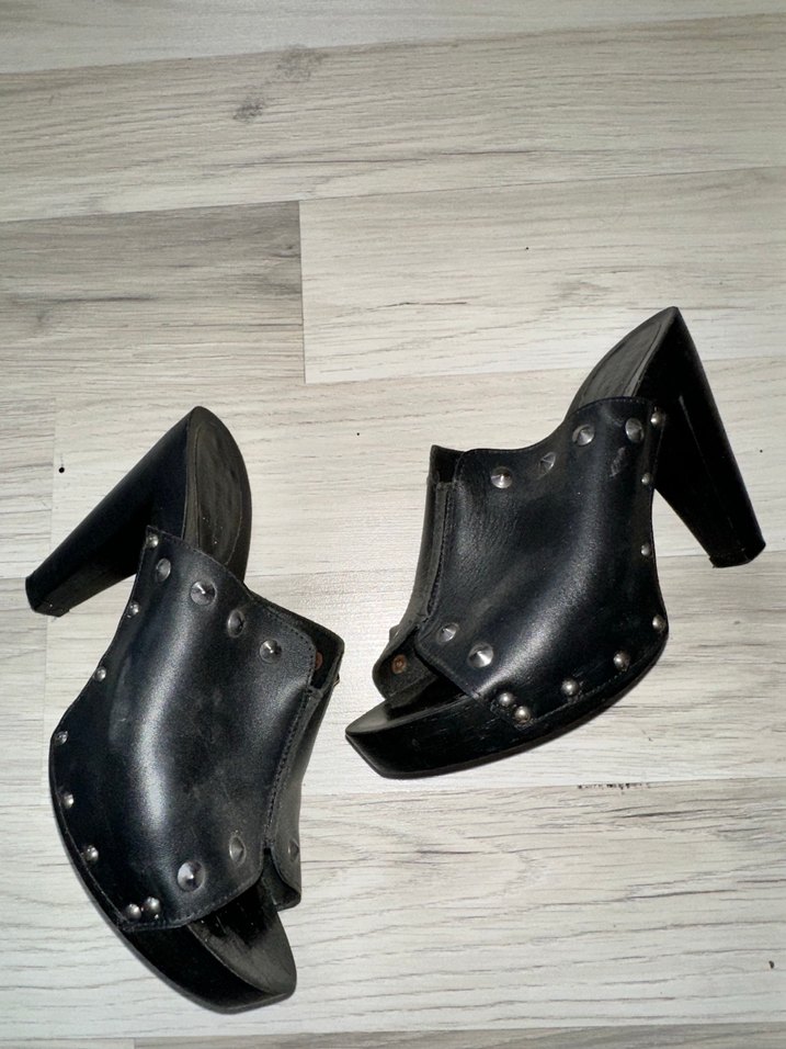 Tokalı ve perçin detaylı siyah deri platform topuklu ayakkabı, gotik tarzıyla cesur romantik buluşmalar için uygun. Gerçek deri