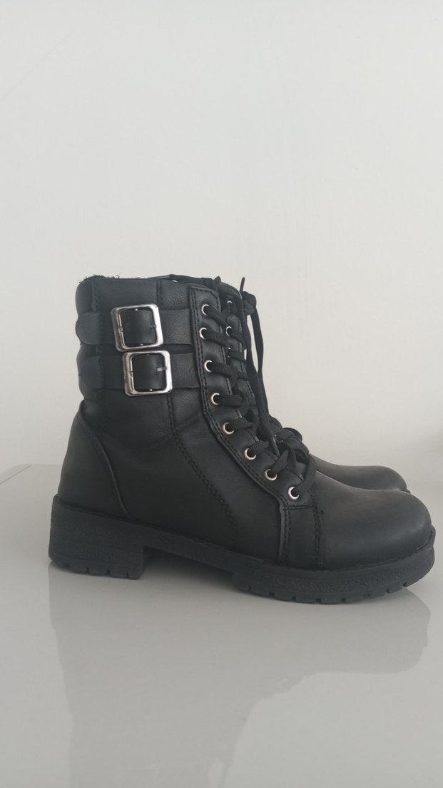 Tokalı Siyah Deri Punk Botlar