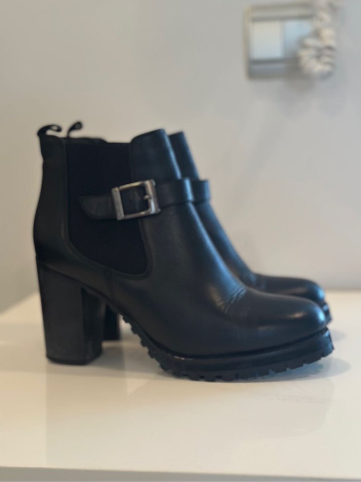 Tokalı Siyah Deri Topuklu Kadın Bot