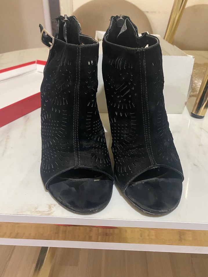 Tokalı Siyah Desenli Kadın Dolgu Topuk