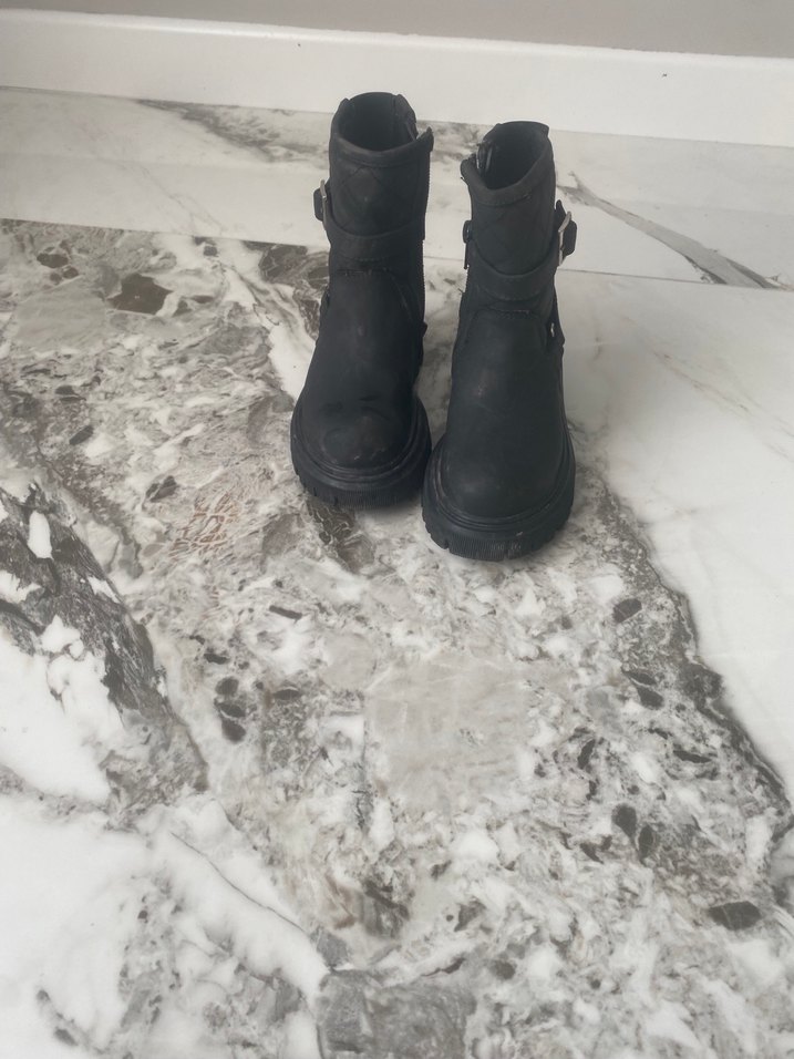 Tokalı, kauçuk malzemeden yapılmış siyah goth tarzı kız cocuk botları. Blok topuklu, günlük kullanıma uygun grunge punk görünümü sunar.