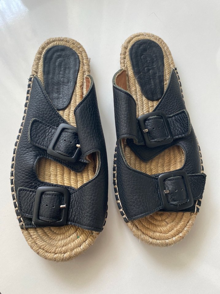 Ürün gerçek deridir rahat bir yapıya sahiptir . Tek sorunu tabanı hasır olduğundan ip çıkması başlamış kullanıma engel değildir . Görsellerde mevcut