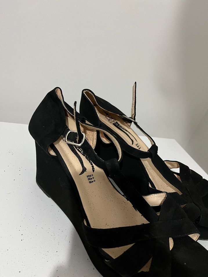 Tokalı Siyah Dolgu Topuklu Kadın Ayakkabı