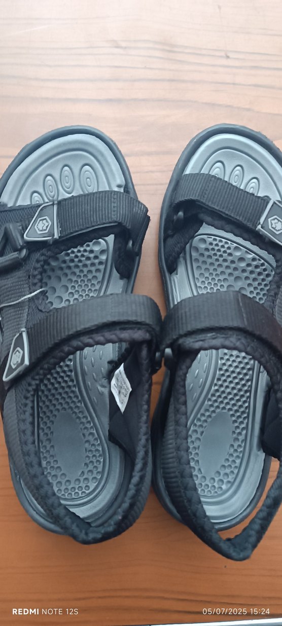 Tokalı kaymaz bantlara sahip siyah kauçuk erkek sandalet, dış mekan kullanımı için uygun, trend ve rahat tarzda.