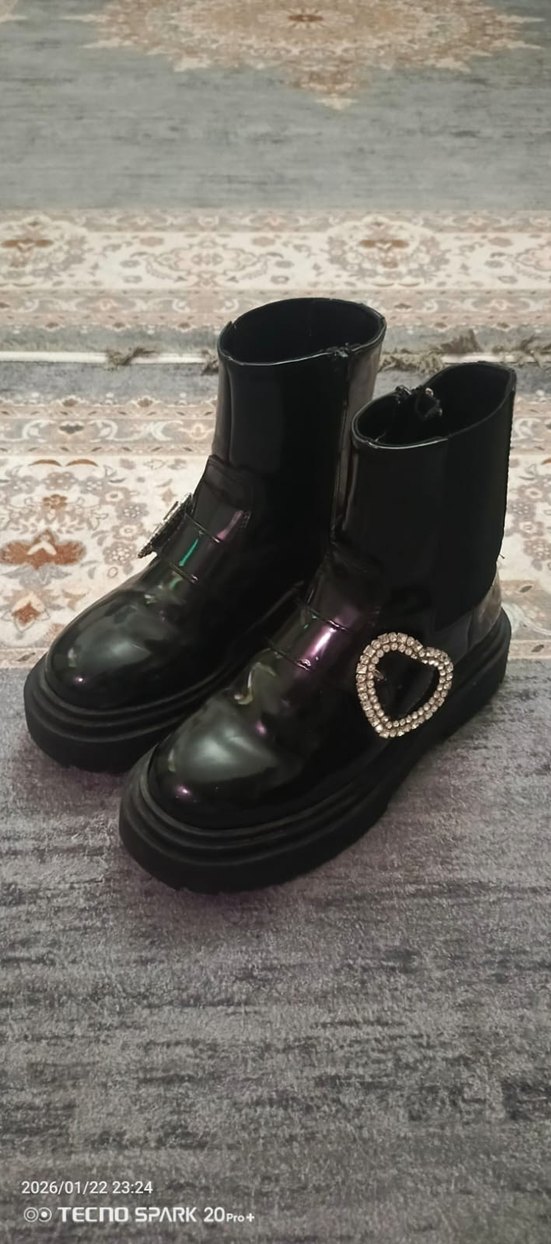 Tokalı ve kalp şekilli taş işlemeli siyah kauçuk gotik botlar, yüksek topuklu, günlük kullanıma uygun rock punk tarzı.