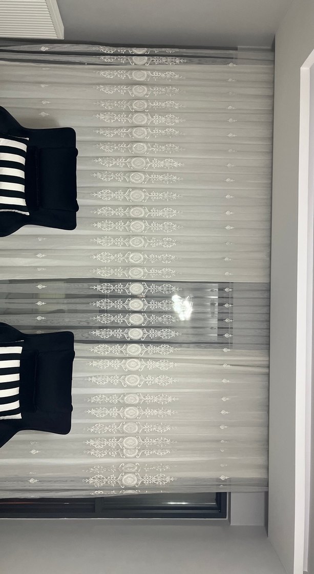 Çağdaş tasarıma sahip perde .iki adet ayrı perde bi kaç yerinde delikler mevcut