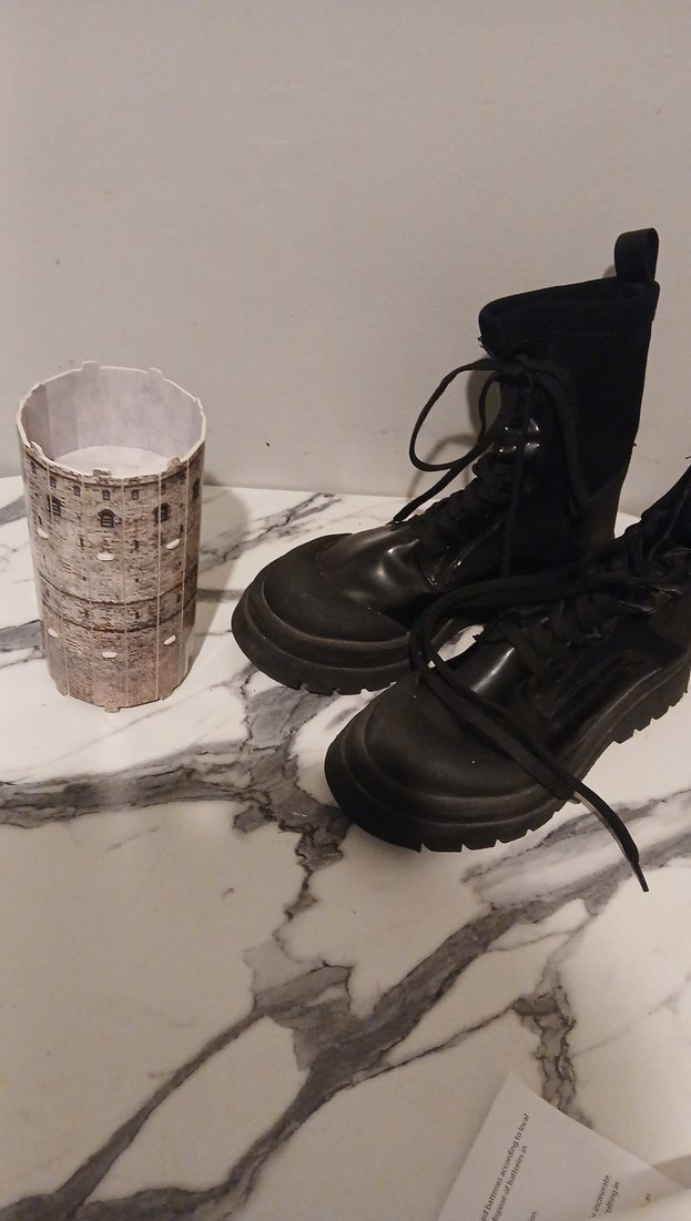 Tokalı detaylara sahip, baskılı desenli siyah kauçuk kadın botları. Blok topuklu ve günlük kullanıma uygun, gotik Paris tarzı.