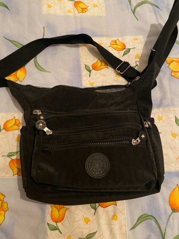 Tokalı ayarlanabilir askılı, çok fermuarlı siyah çapraz çanta. Sentetik kumaştan, günlük ve sokak tarzına uygun.