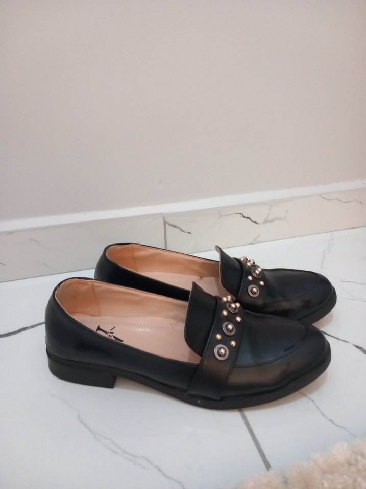 Tokalı Siyah Kadın Düz Ayakkabı