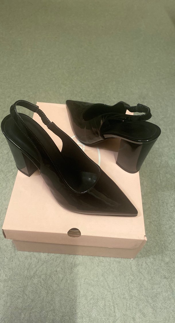 Lastikli tokalı, siyah kadın klasik ayakkabı. Kauçuk malzemeden, blok topuklu, modern klasik tarzda, romantik akşamlar için uygun.