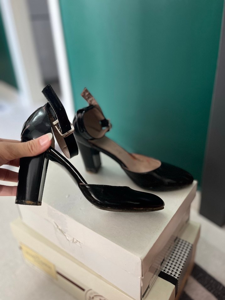 Tokalı kaymaz tabanlı siyah kadın topuklu ayakkabı, ofis ve goth tarzına uygun şık tasarım.