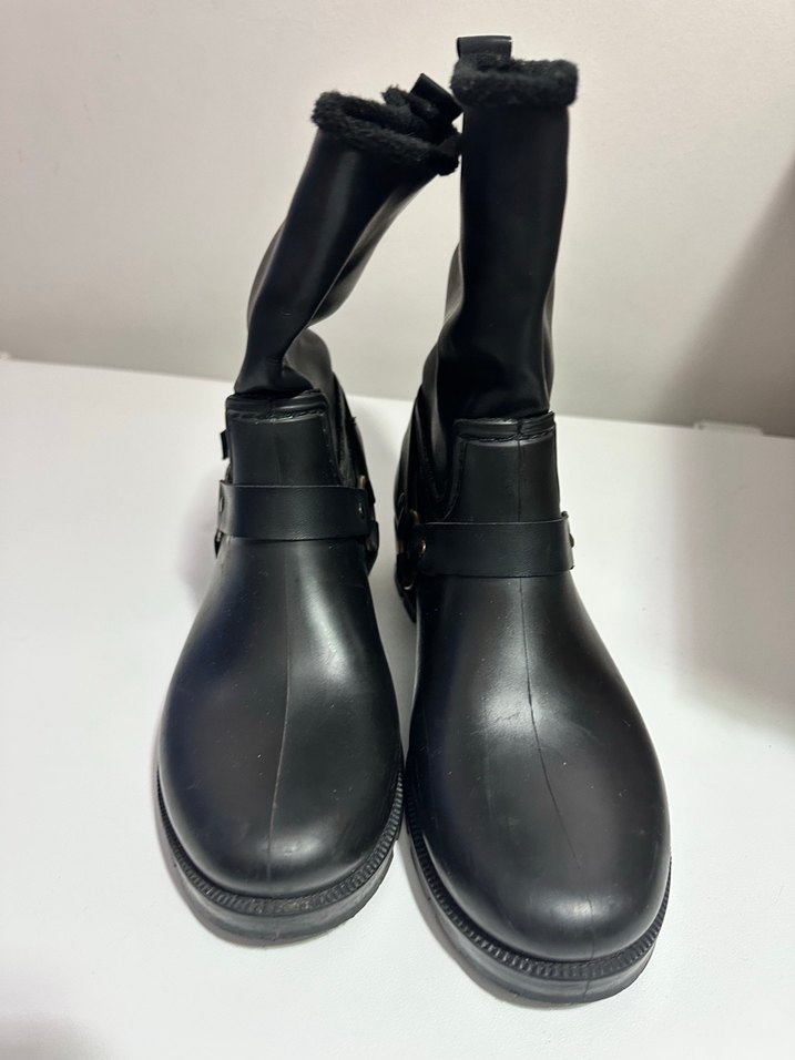 Tokalı ve siyah kauçuk kadın botları, gotik tarzda ve yumuşak , günlük kullanıma uygun.