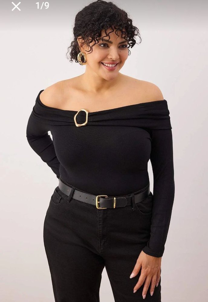 Tokalı detaylı siyah kayık yaka, uzun kollu, vücuda oturan kadın bluz. Romantik akşamlar için uygundur.