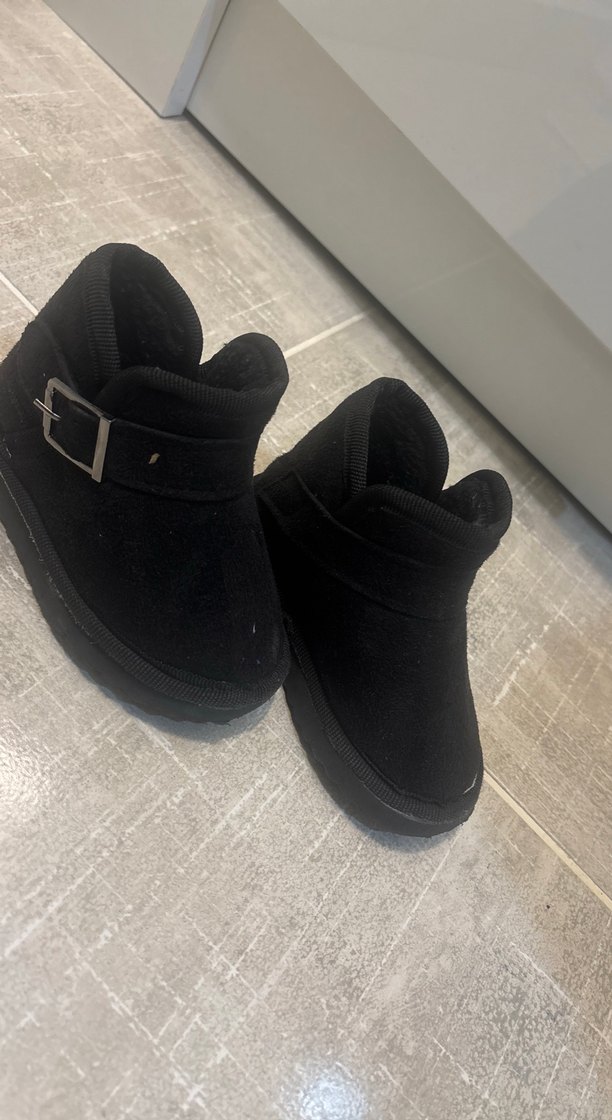 Tokalı detaylı, siyah renkte, desen içermeyen rahat sokak stili kız çoçuk botu. 21 numara