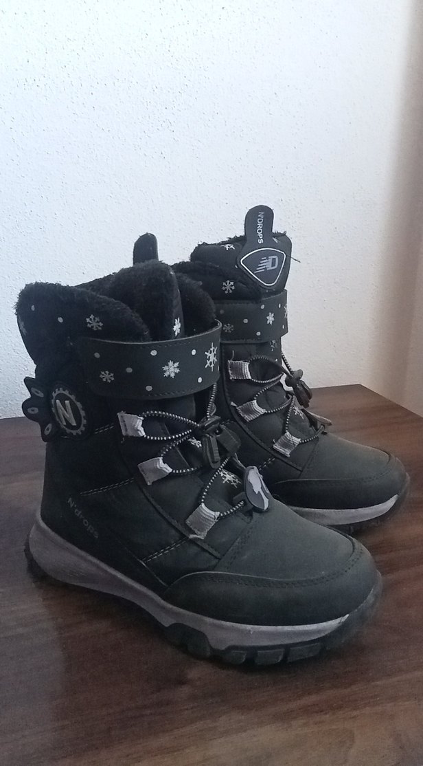 Tokalı, siyah kauçuk kız çocuk botu. Gri kar tanesi desenli, sokak stiline uygun, sıcak astarlı.kullanılmış üründür marka temsili